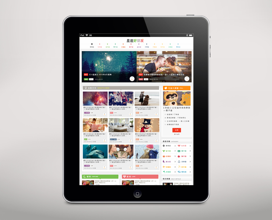 Platform for horoscope article website. Developed for desktop, tablet and mobile.